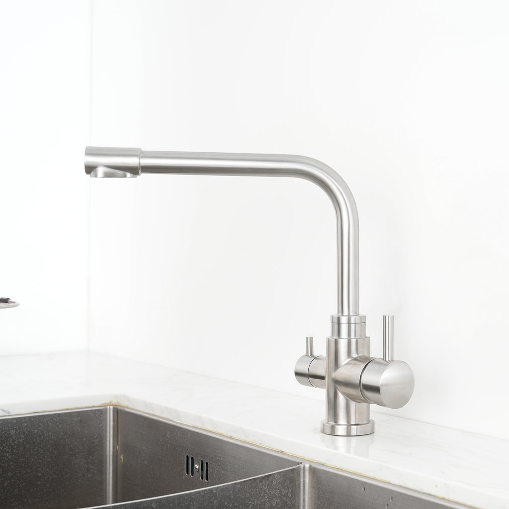 - Tall Square Neck 3-Way Kitchen Mixer Tap - Stainless Steel