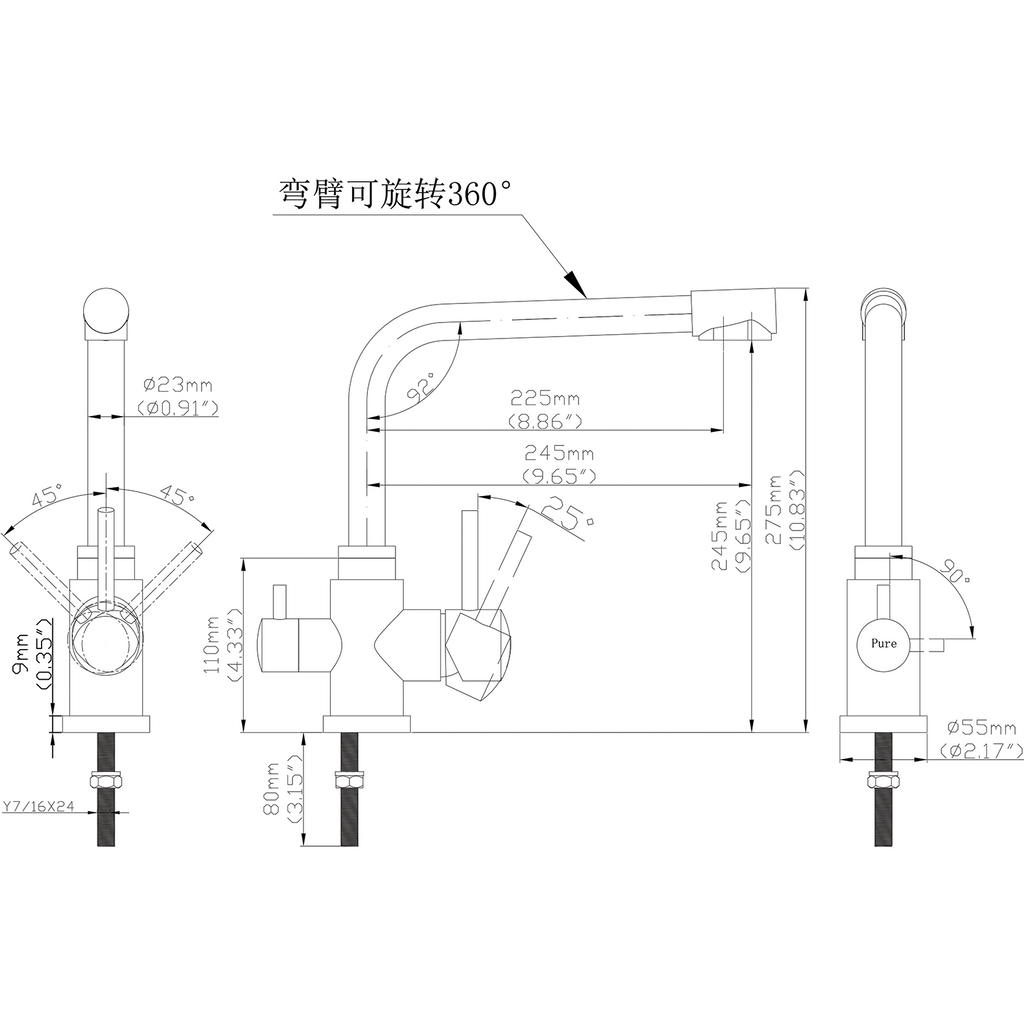 Flexible Design: The 360° swivel and tall square neck design provide maximum flexibility and reach, making it ideal for any kitchen layout.